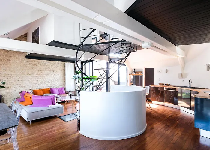 The 130 m² Triplex De Charme : Terrasse/Vue Panoramique Apartment Beaune is located just 0.8 km from Le Jardin des Remparts and just a 10-minute walk from the wood-beamed shop "Boutique Wine Market". Staying in this 2-bedroom apartment, nestled in proximity to the Burgundy Wine Museum, guests can relax on a terrace.